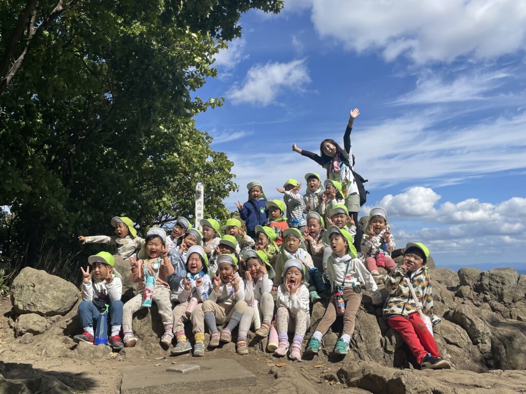 9月24日に秋晴れのいいお天気の中、年中ぐみ3クラスで円山登山にチャレンジしてきました!