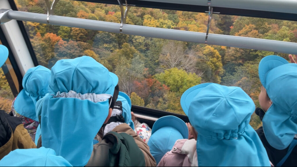 ロープウェイやミニケーブルカーではどんどん山頂に向かって上がって行くことにドキドキびっくりしながら素敵な景色が見えると「わー!」と歓声が上がりました。