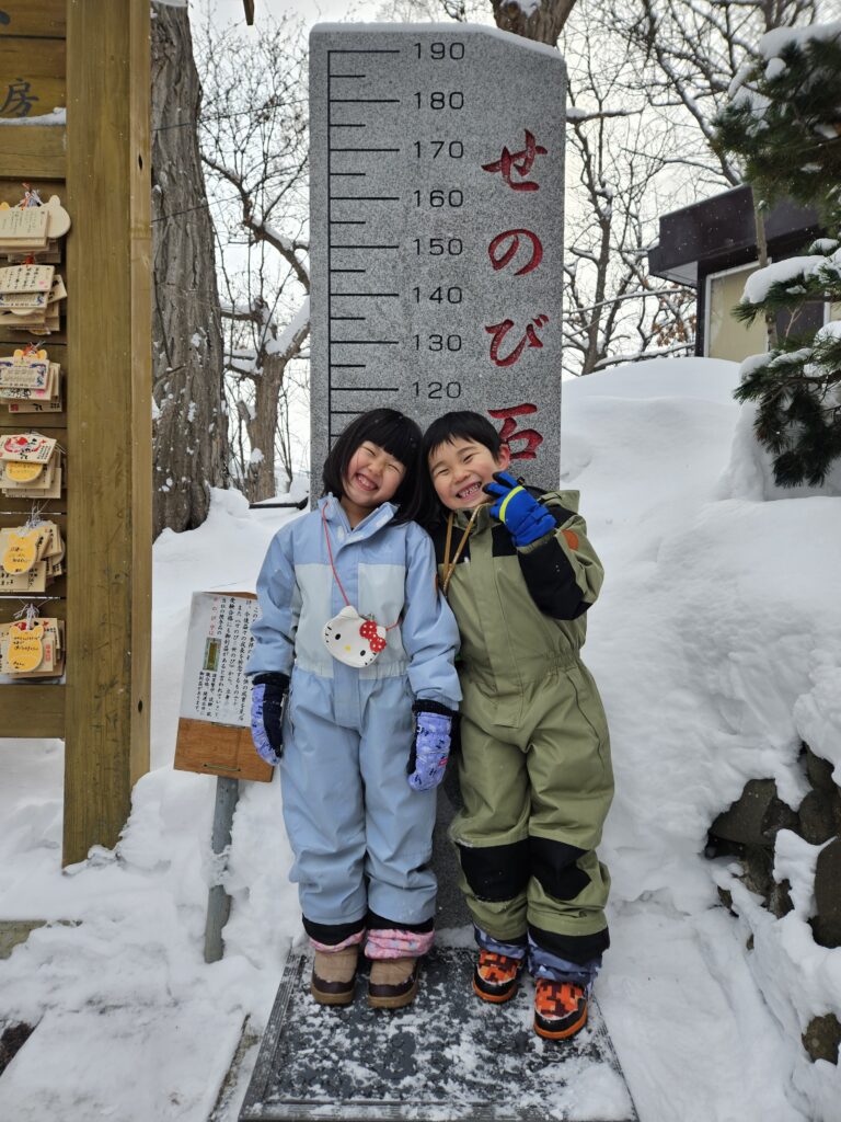 帰りには、背伸び石の前でお友達と並びこれからもどんどん大きくなれますようにと願いを込めてきました。