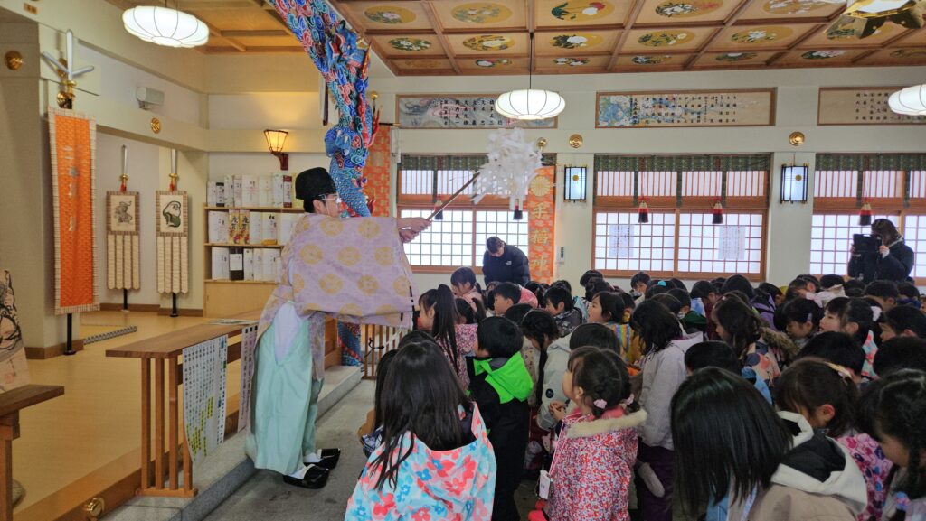 また、神主さんにお祓いもしてもらい、初めての体験に緊張している様子も見られましたが、一つひとつの作法をしっかりと学ぶ事も出来ました。