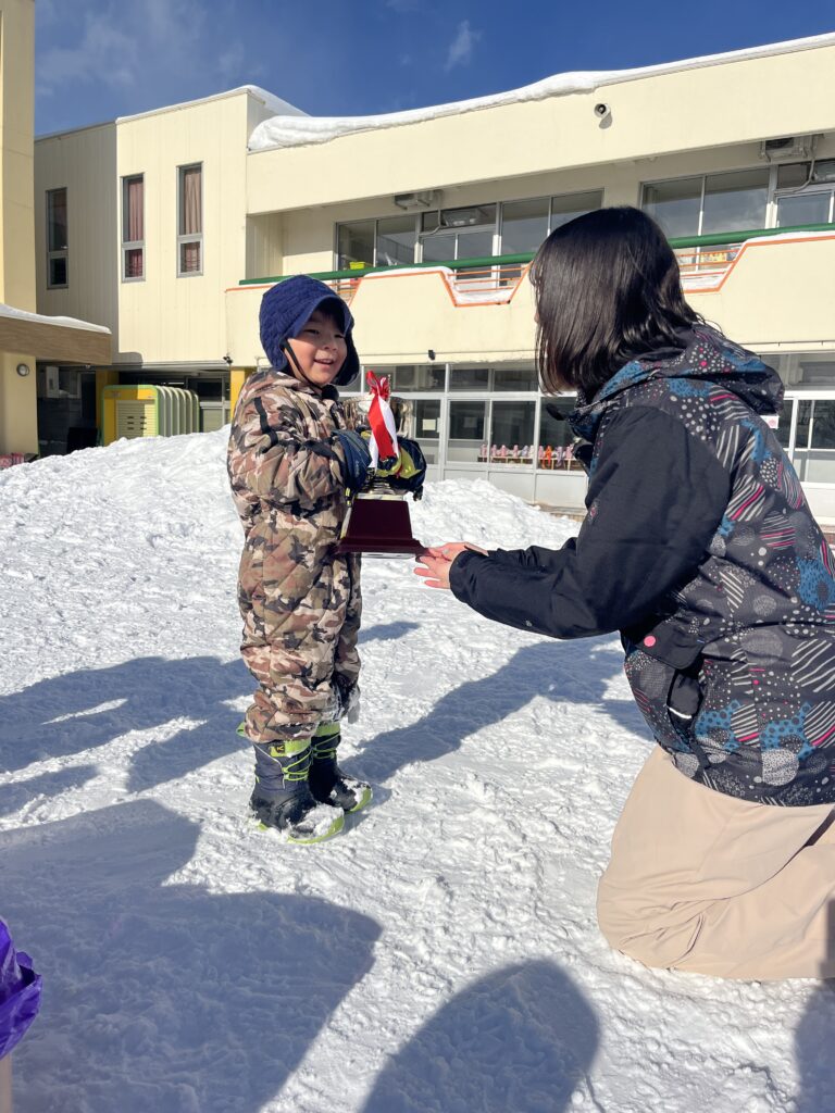 素敵なトロフィーと賞状をもらって「やったあ~!!」と喜んでいました。負けちゃったクラスは悔しんでいたり、少しムスッとしている子もいて勝ち負けに喜んだり悔しがる姿に成長を感じました😊