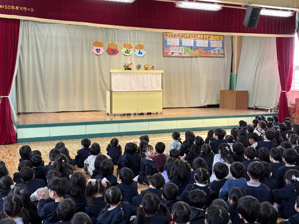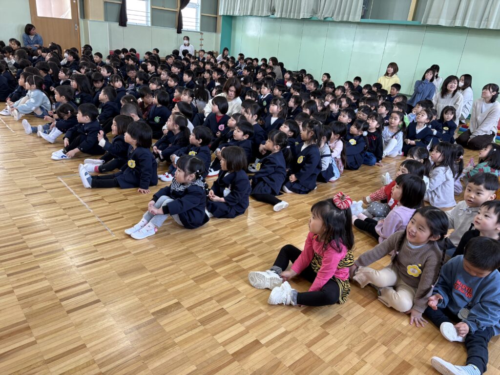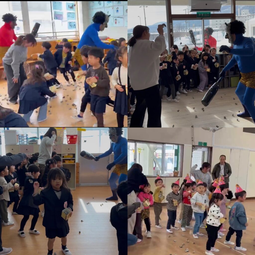 節分の由来の話を聞いたり、先生達の出し物を楽しんだり‥そして最後には豆まきの歌を歌ってこの後に待ち受ける豆まきで鬼退治するぞー‼︎と気合いをいれ、それぞれのクラスへと戻って行きました。